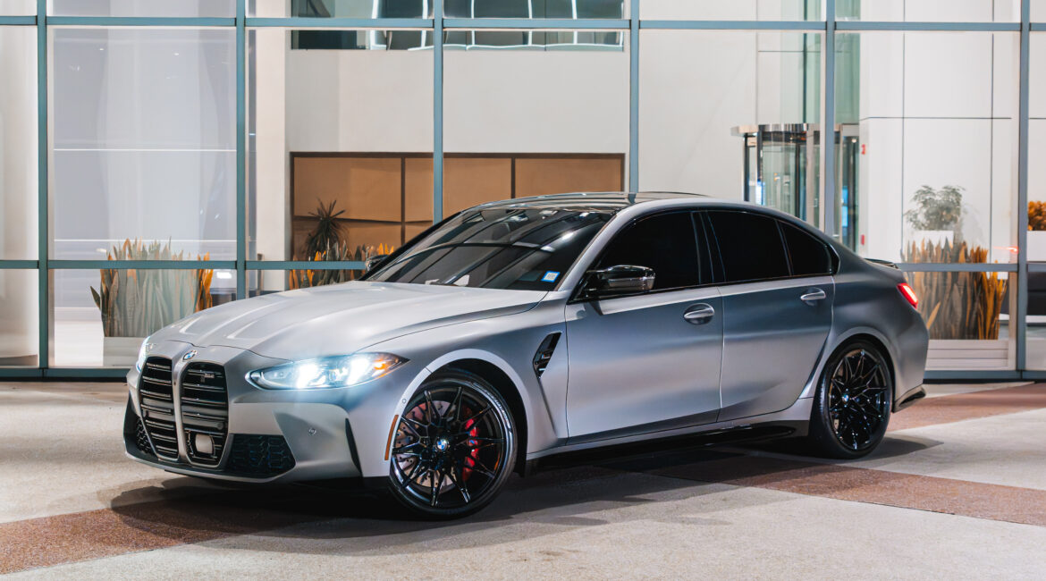 Finished in a sleek Satin Silver exterior and featuring a bold Red and Black two-tone interior with performance bucket seats, this M3 Competition strikes a perfect balance of elegance, comfort, and aggressive design — all powered by the exhilarating dynamics of M Performance engineering.