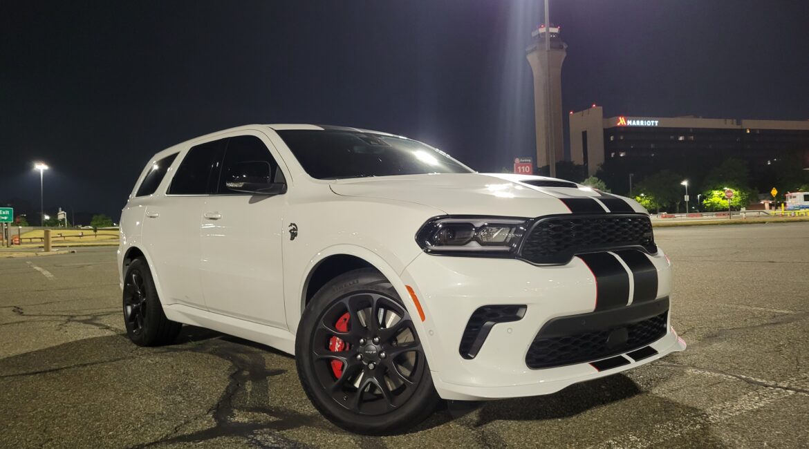 "Ghost Cat" The 2021 Dodge Durango SRT Hellcat is the ultimate performance SUV with a bold, camera-ready presence. This model, finished in striking Vice White with black striping and a deep red interior, delivers 710 horsepower, all-wheel drive, and a menacing stance perfect for hero cars, action sequences, or establishing...