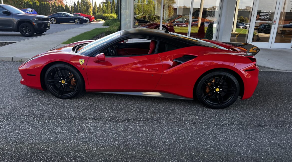 Stunning 2 tone red and black exterior Ferrari. Red and black interior to match the exterior. Blacked out wheels.