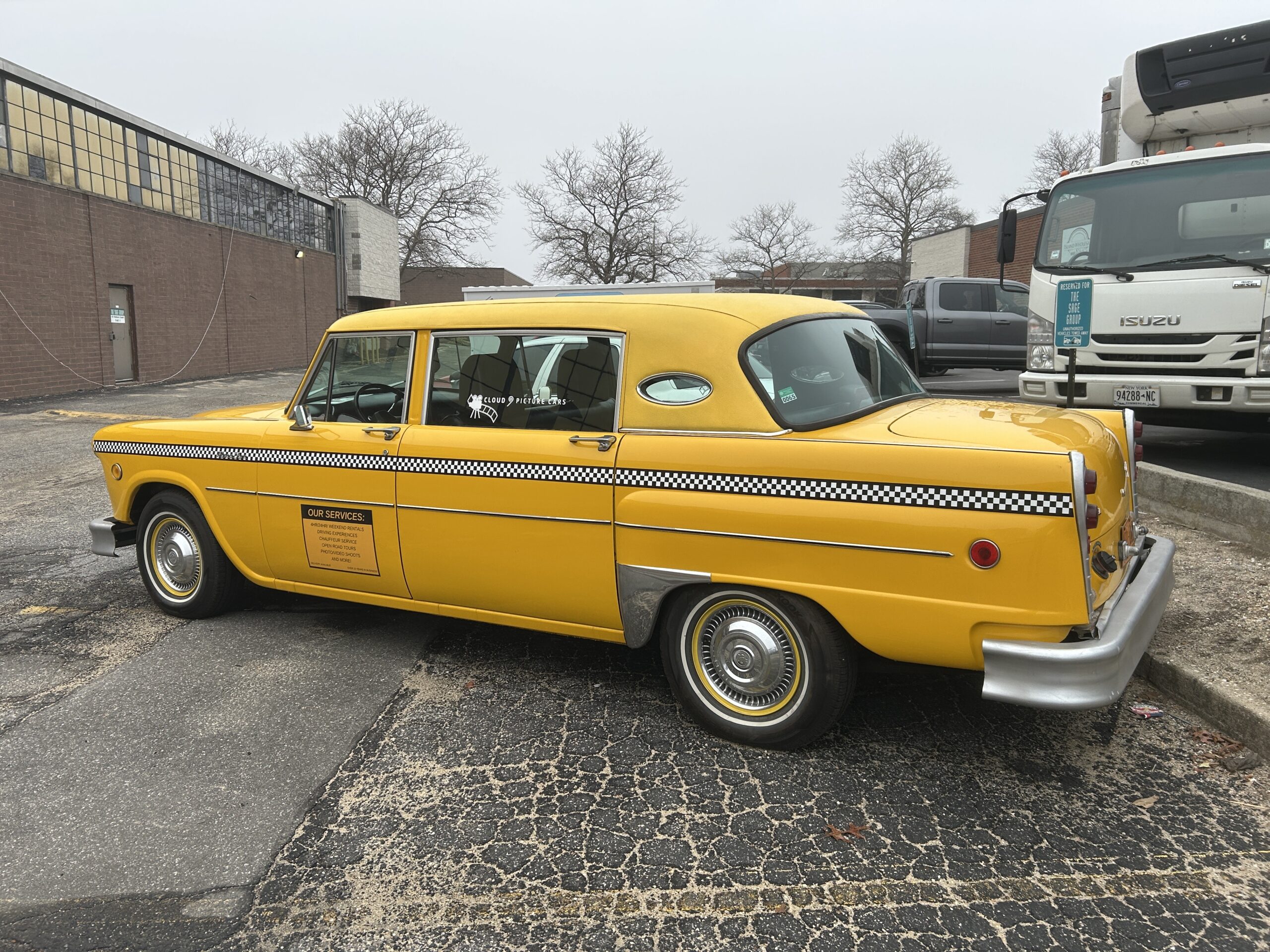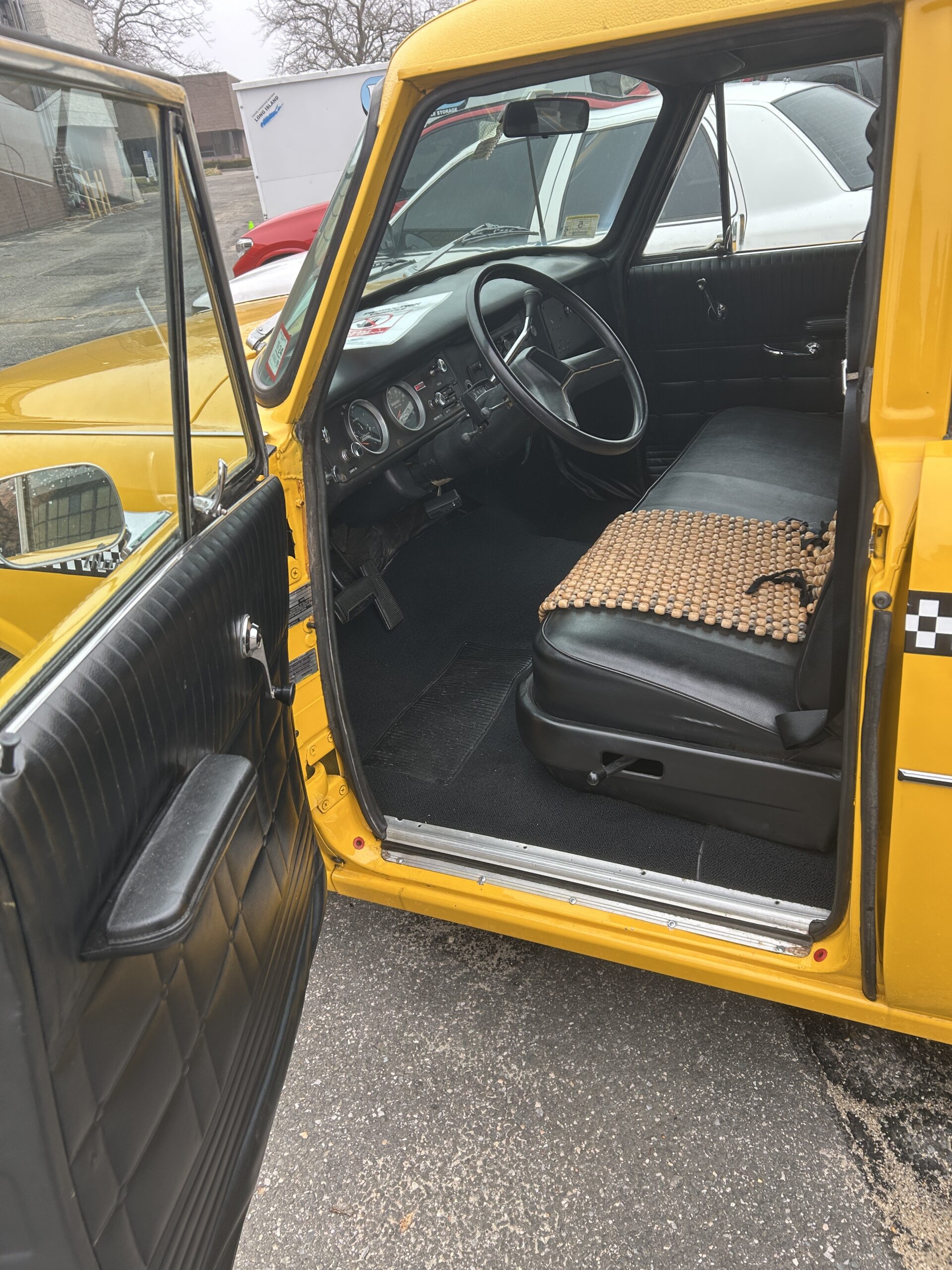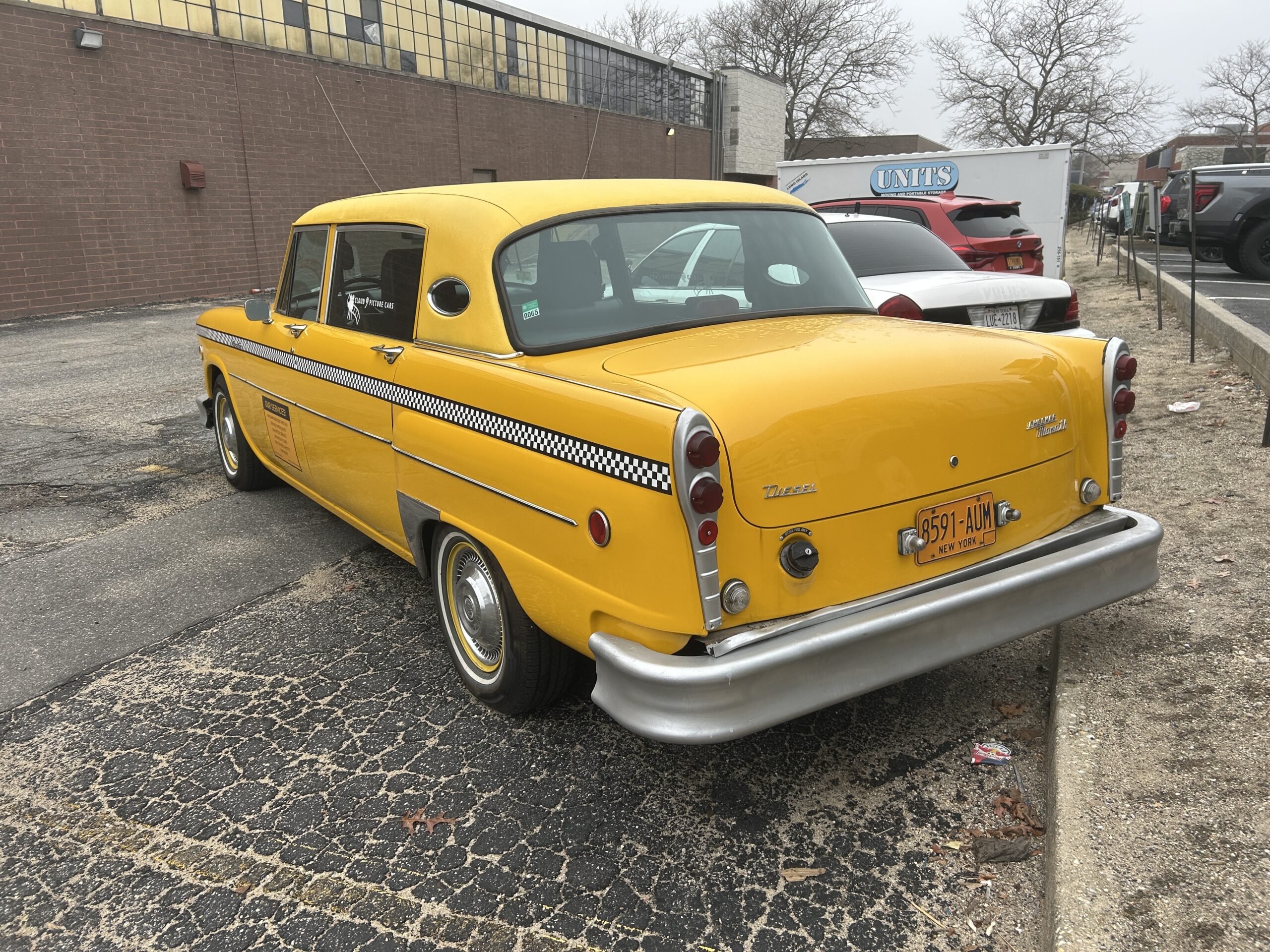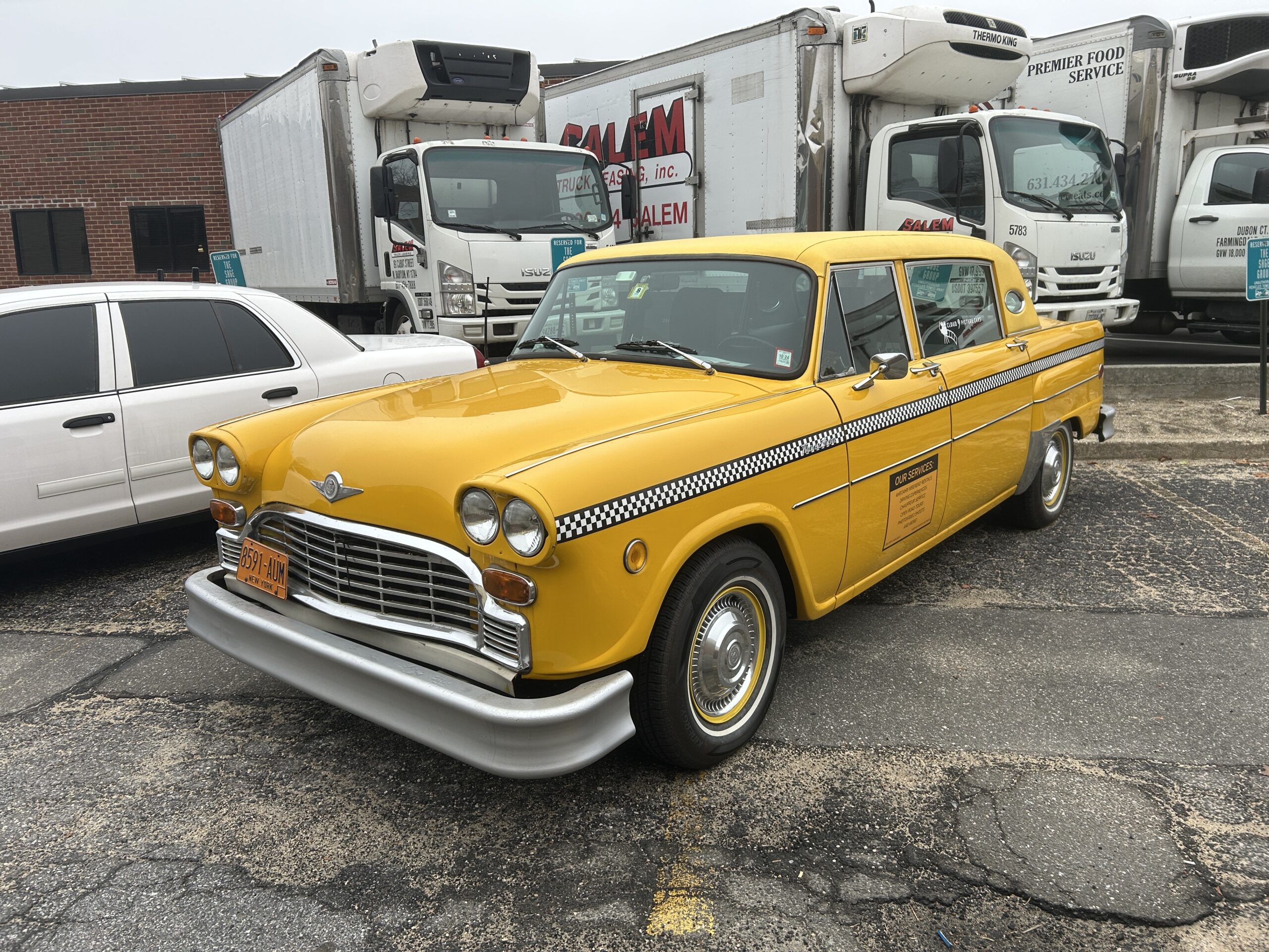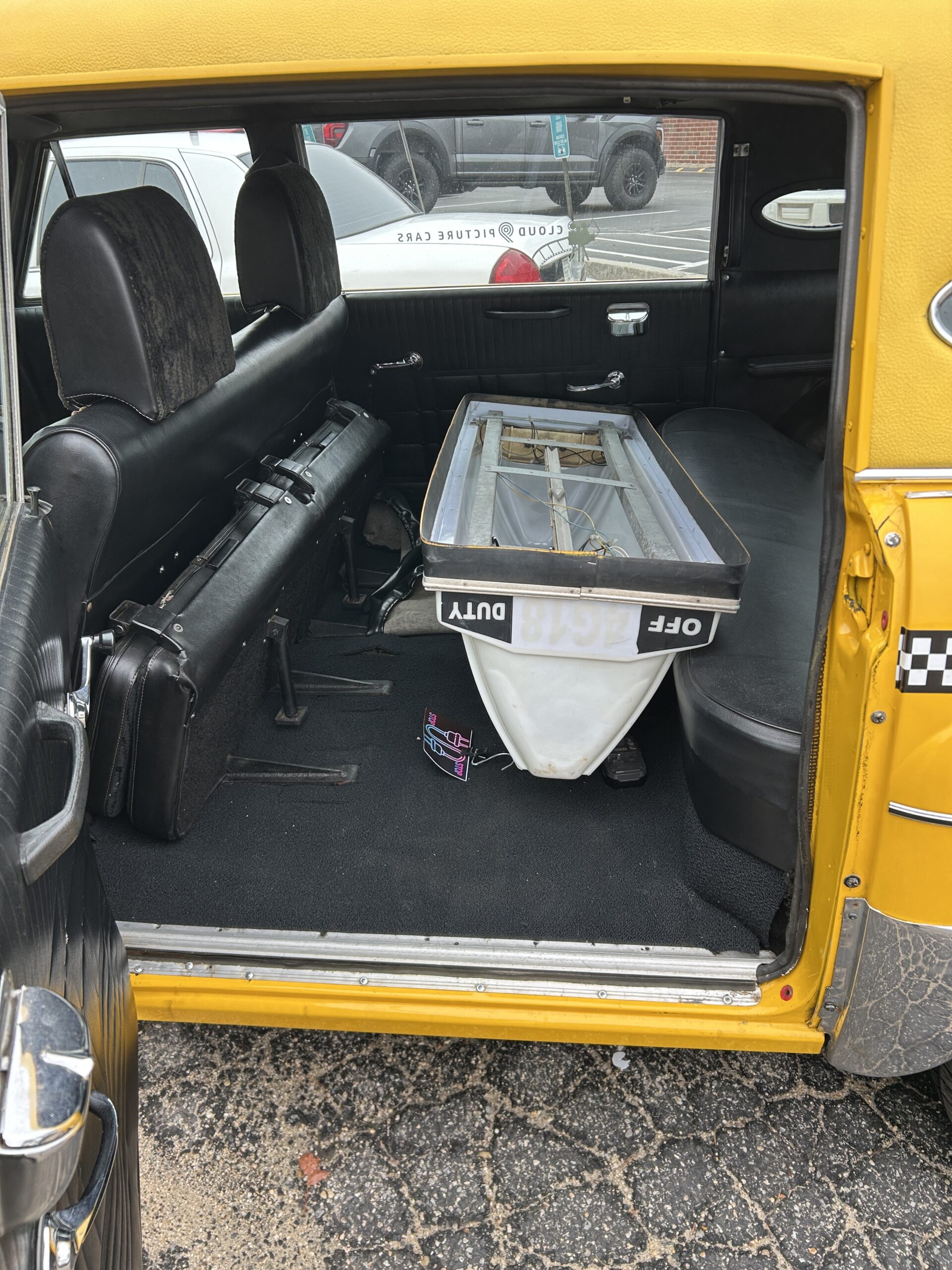 V8 diesel motor power this once funeral home limousine which was converted to a taxi. Has mid row jump seats that fold up, and full bench front and rear seats. Has a functional top advertising display that can be attached.
