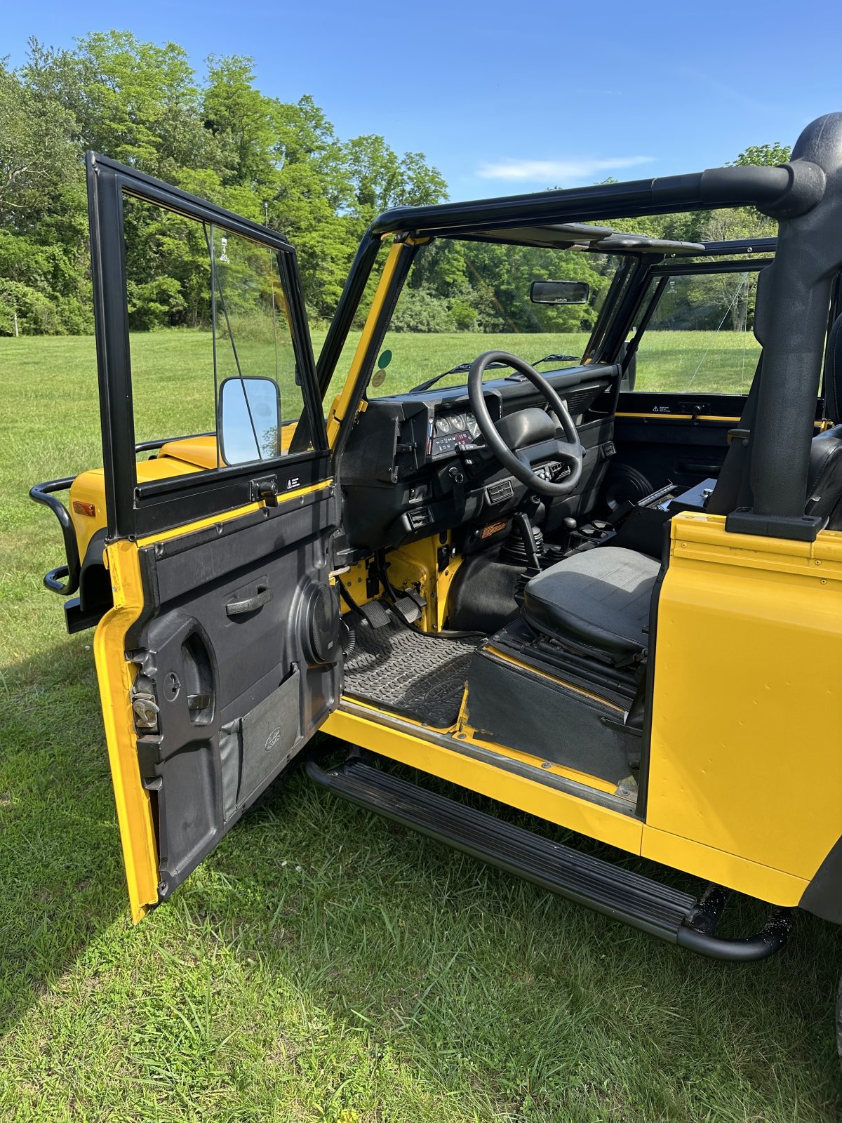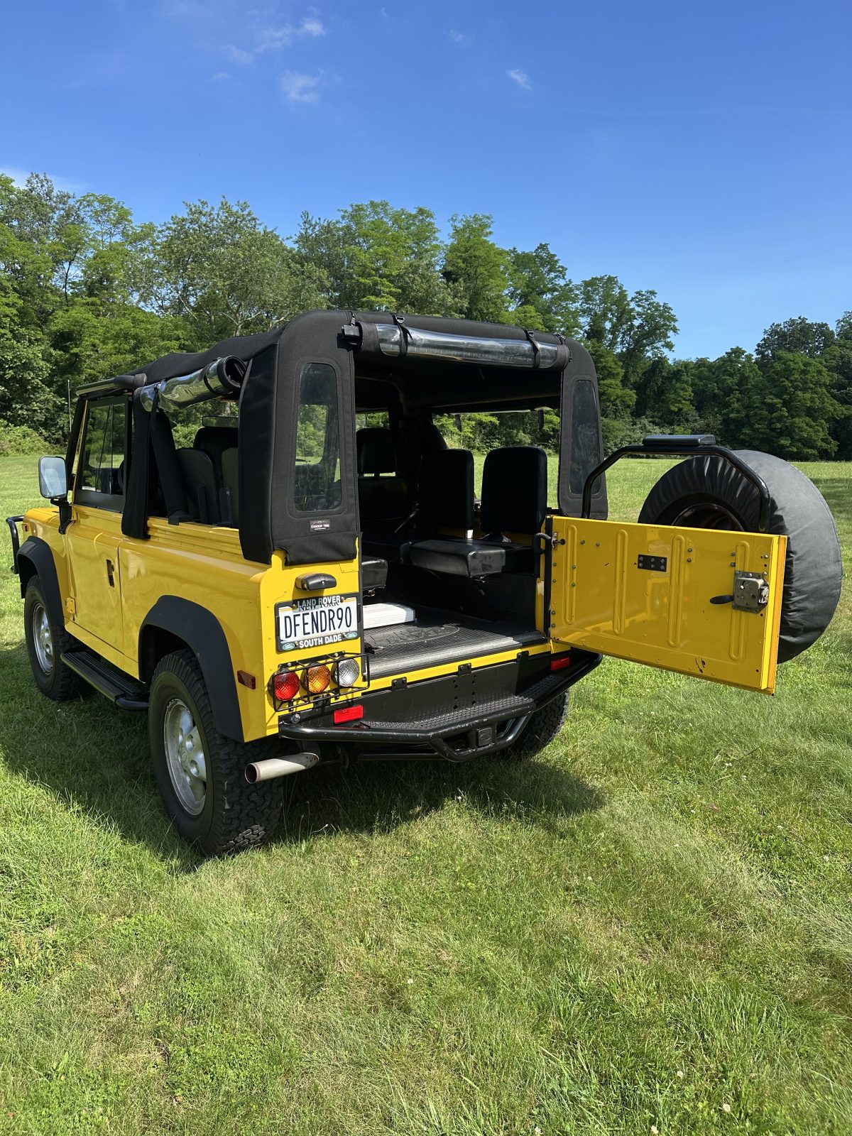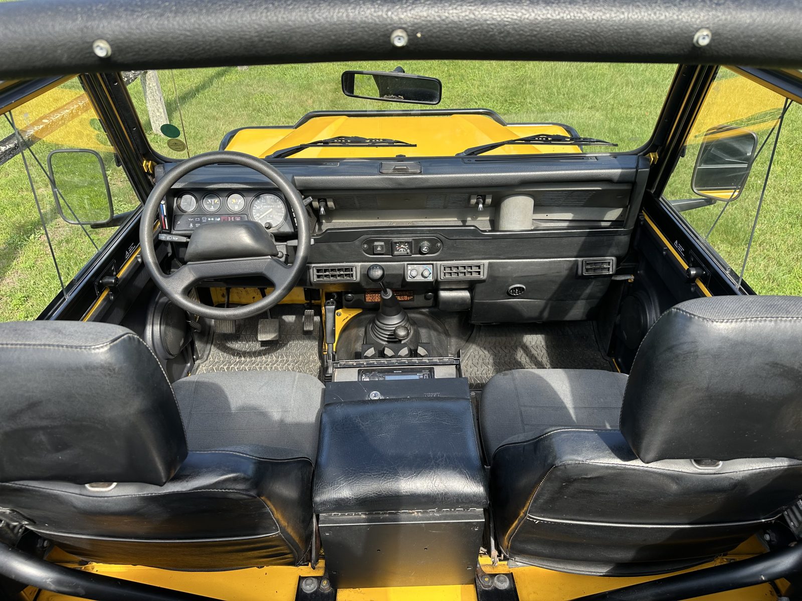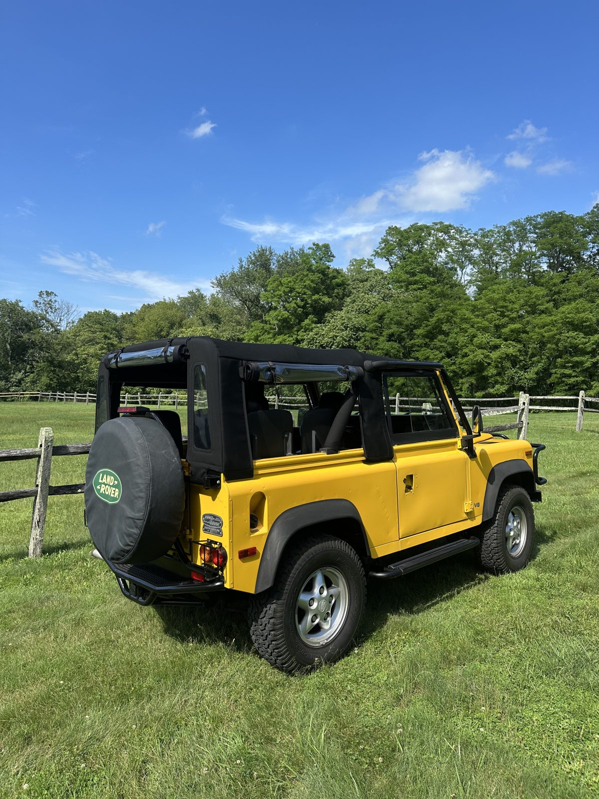 1995 Land Rover NAS Defender 90, manual, soft top, 4 jump seats in back.