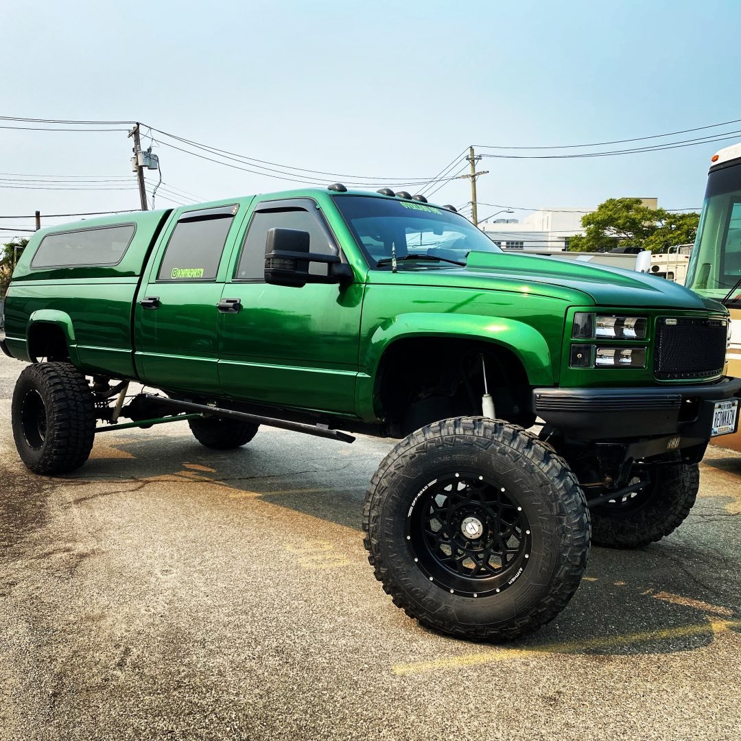 built 6.5 Turbo Diesel, custom paint, solid axle swapped, 40×15.5″ tires, lifted 12″