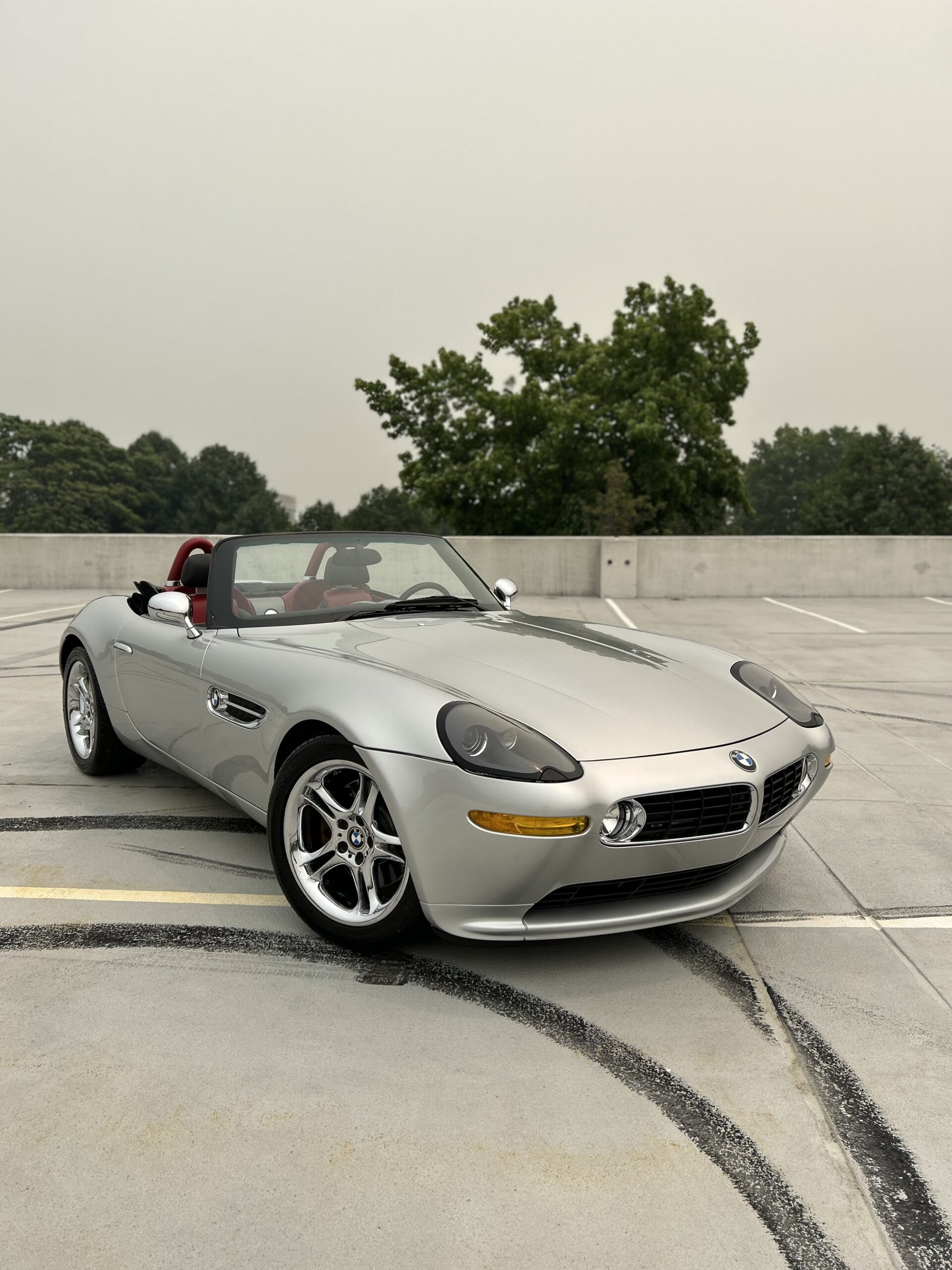 BMW Z3 Roadster convertible with a manual transmission. Silver exterior color with a red interior. Vehicle is completely OEM with no aftermarket parts or modifications.