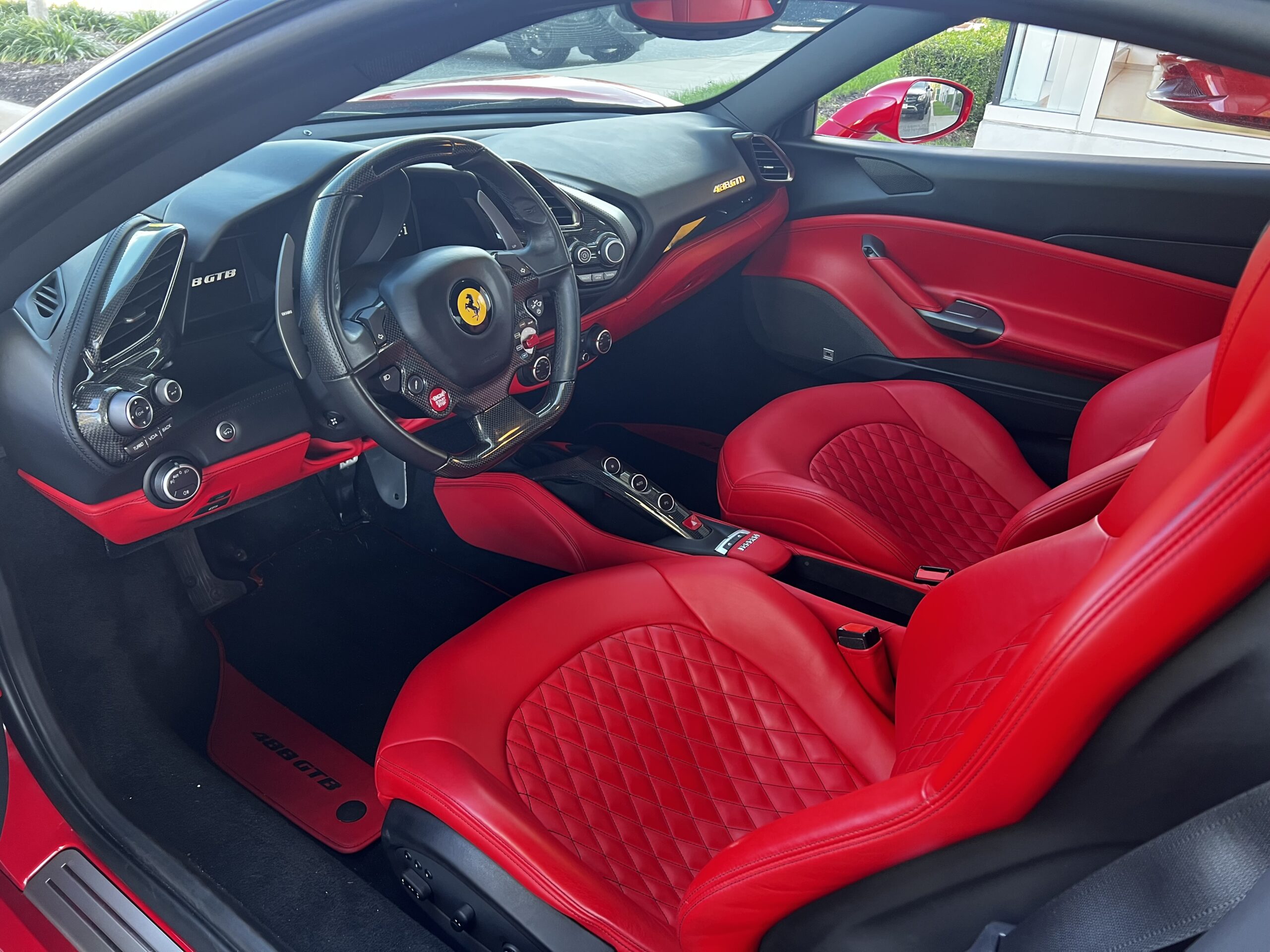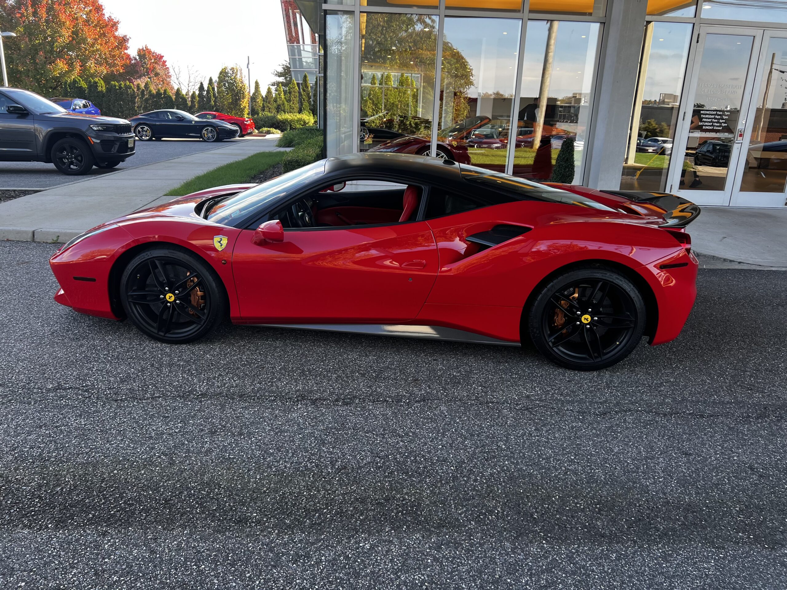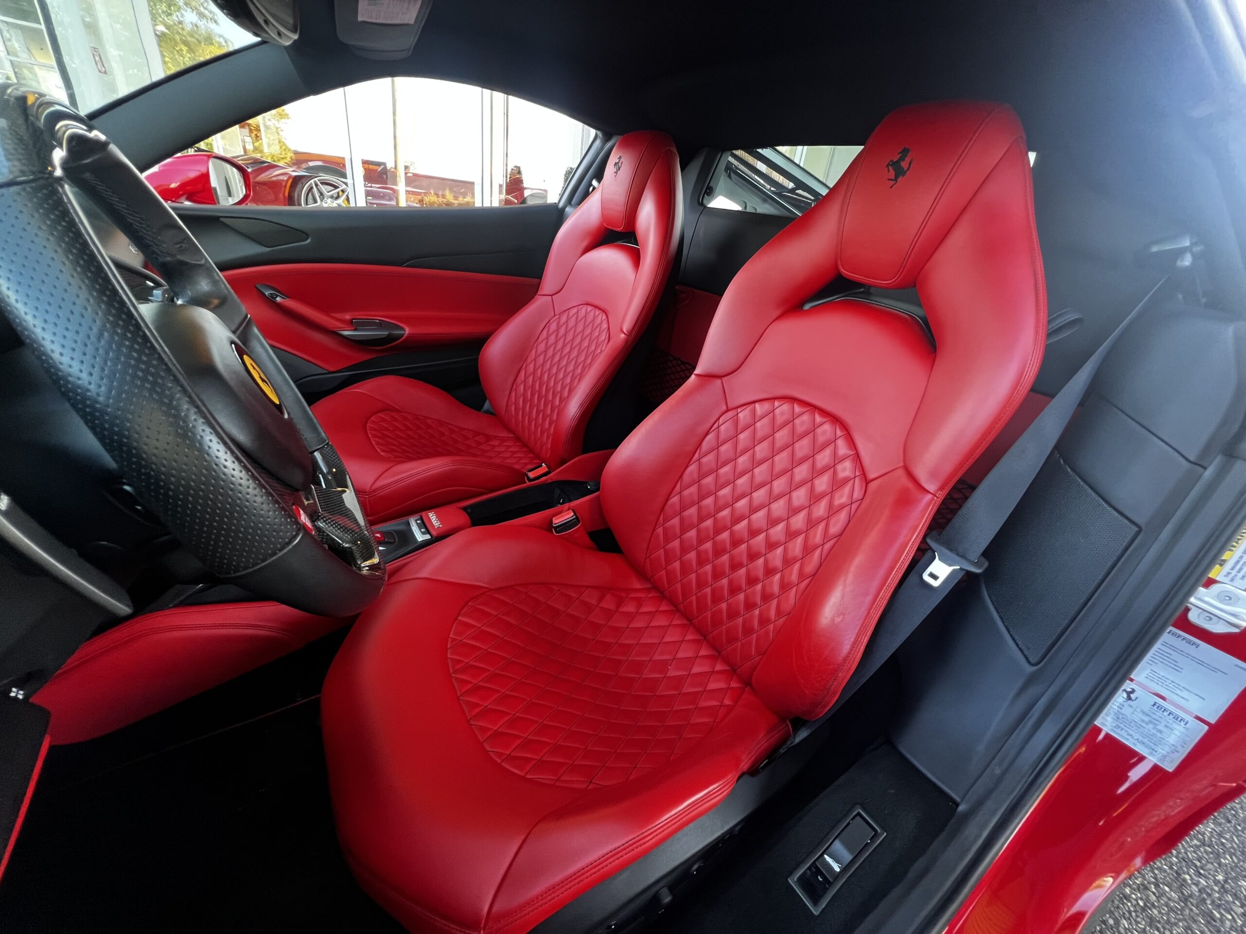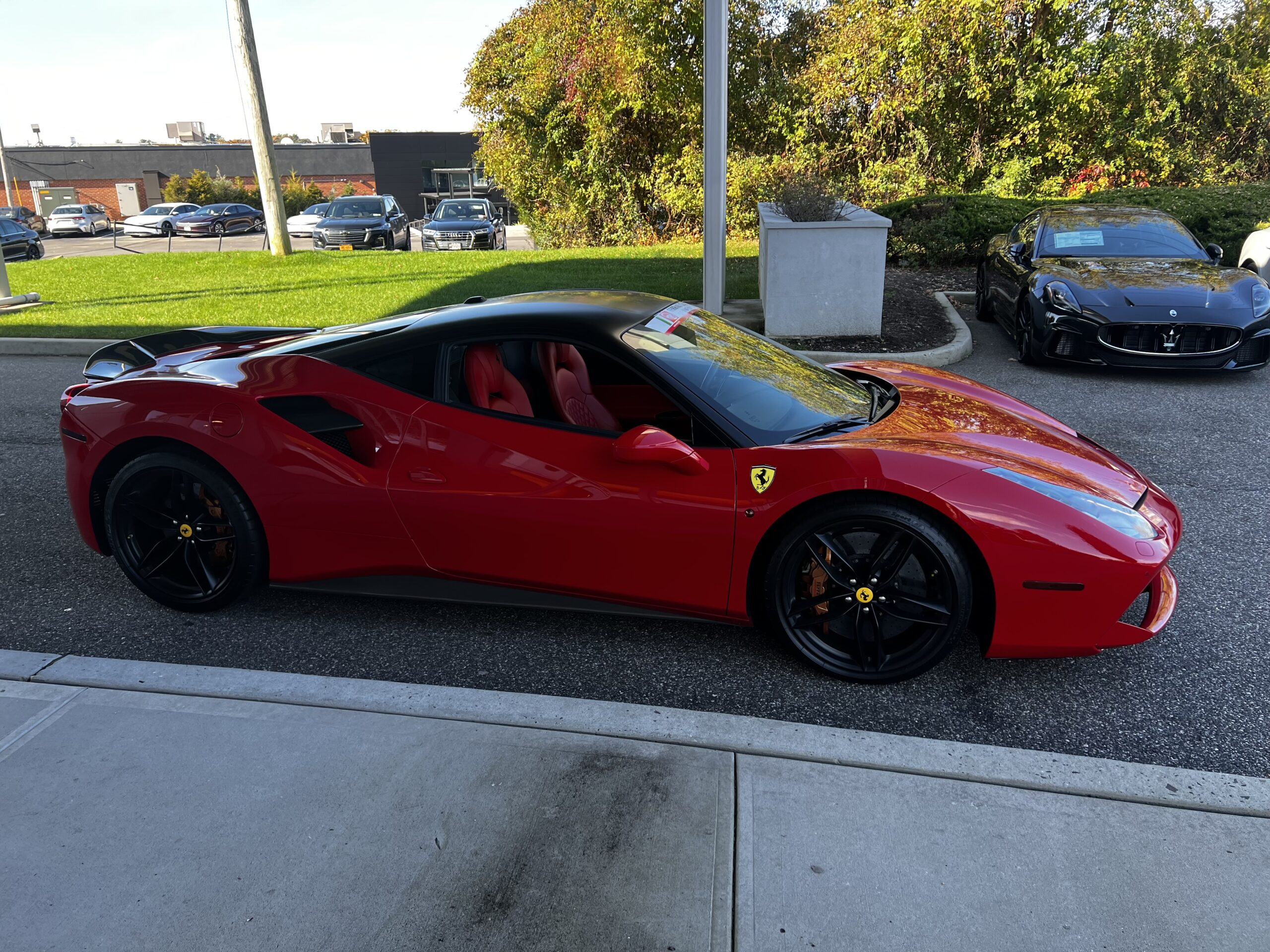 Stunning 2 tone red and black exterior Ferrari. Red and black interior to match the exterior. Blacked out wheels.
