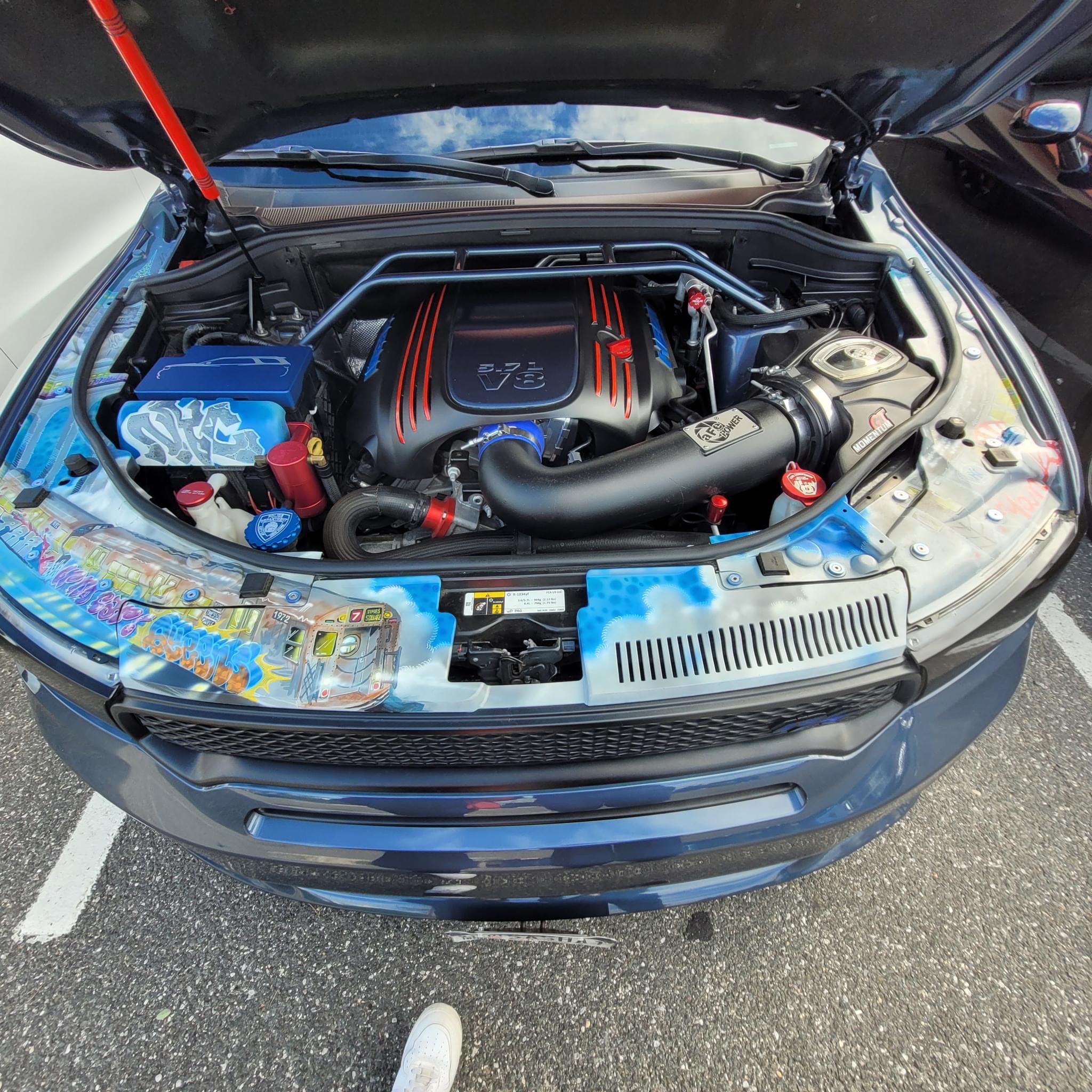 Reactor Blue Pearl paint, custom stripe, lowered, corsa exhaust, custom airbrushed in engine compartment.