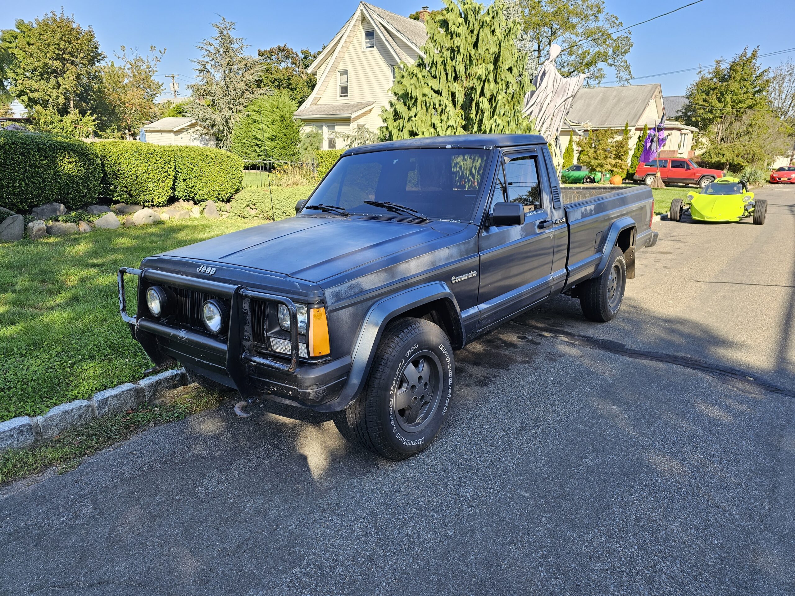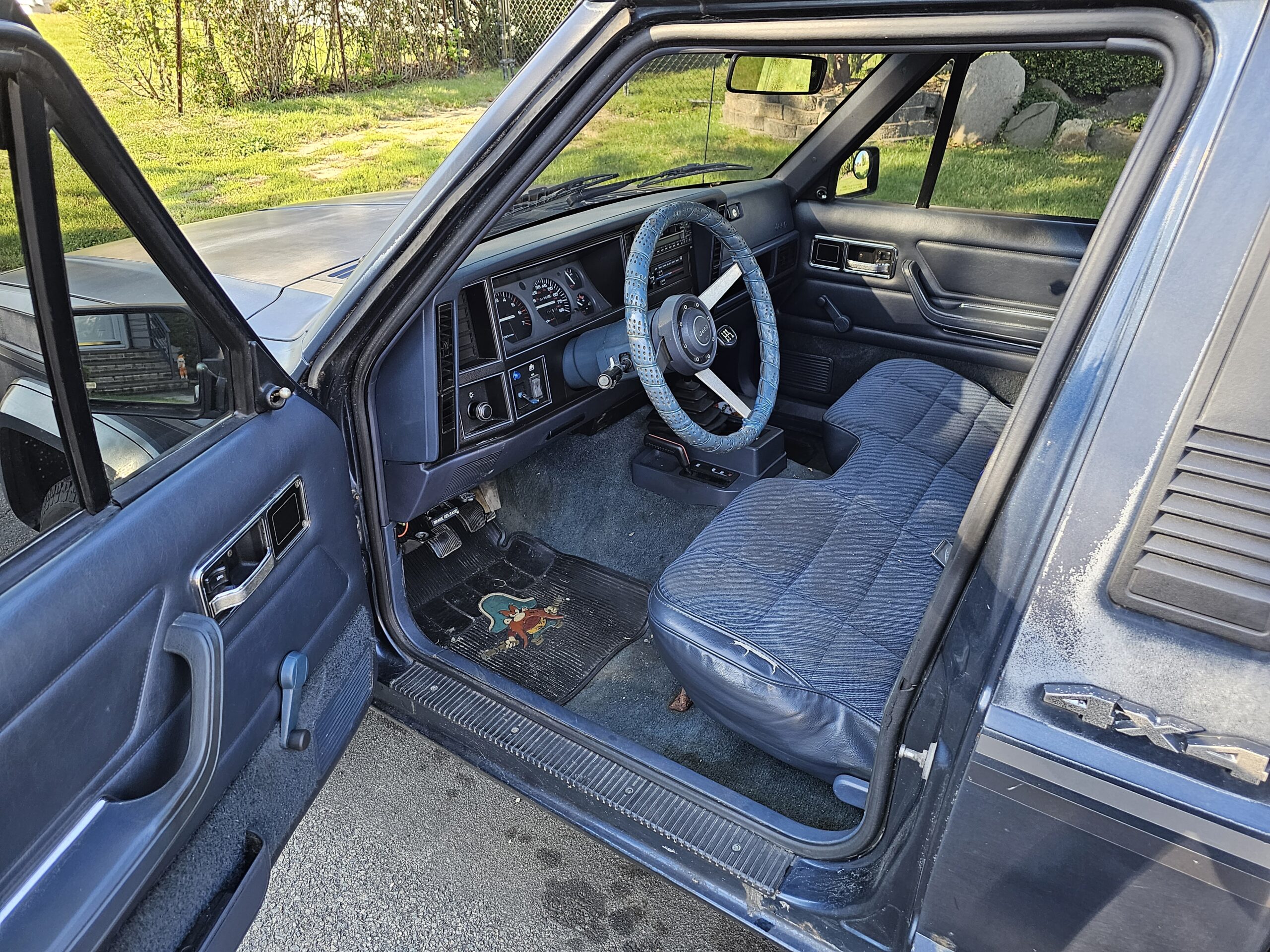 Comanche jeep 7 foot bed 5 speed bench seat blue inside