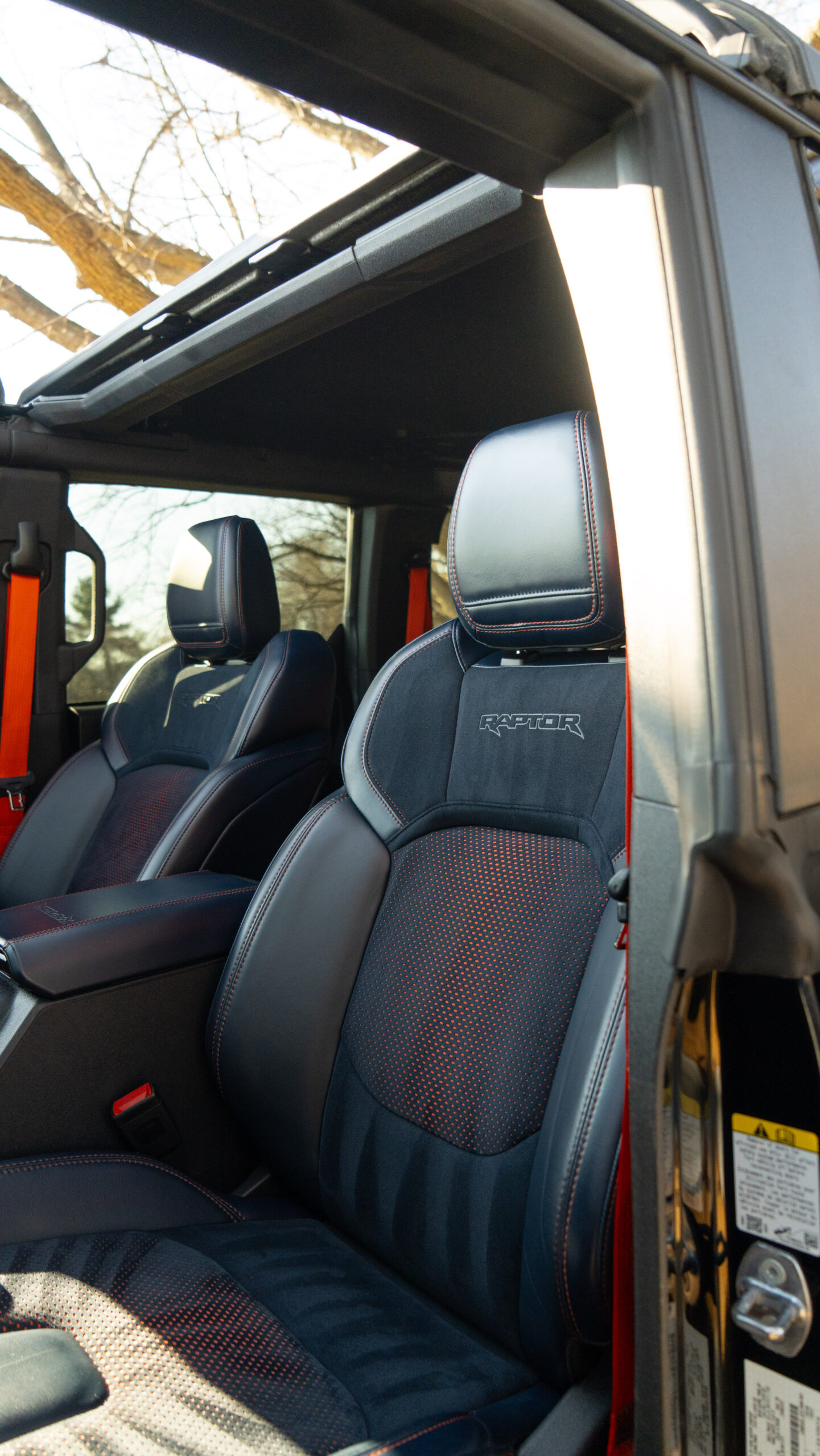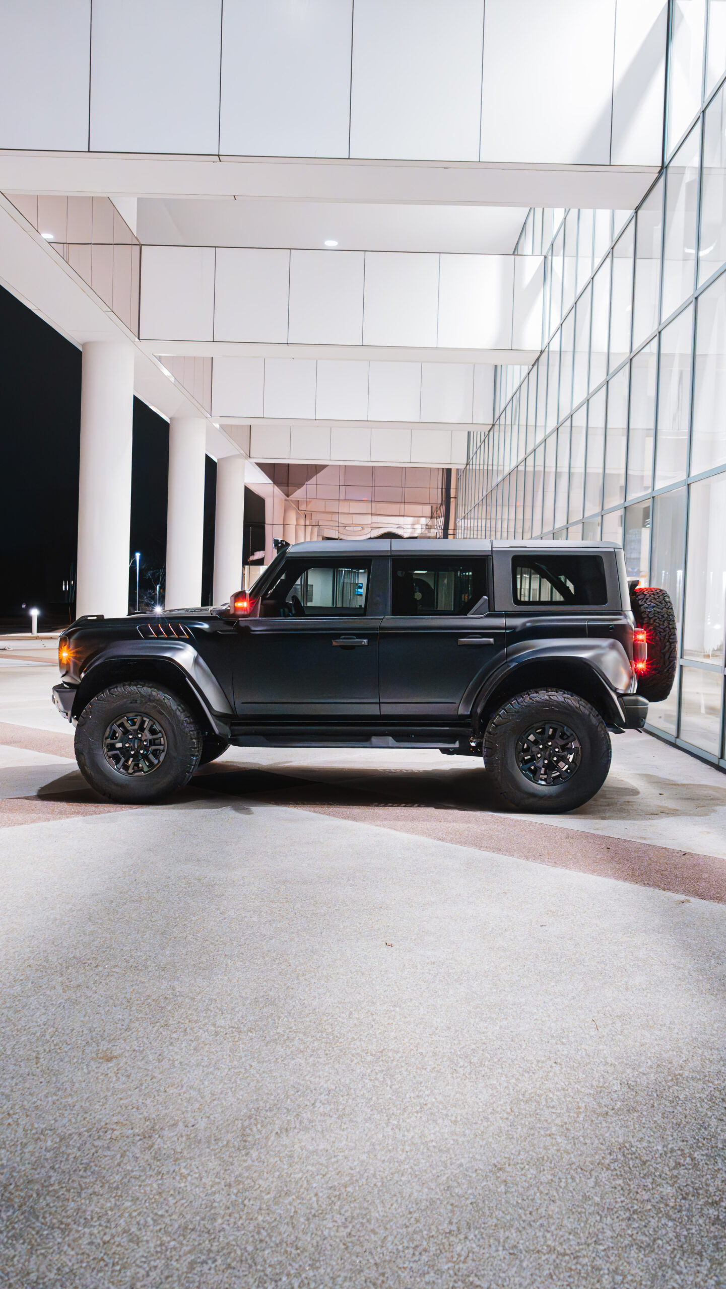 Coated in a stealthy Satin Black exterior and complemented by a refined black interior with Alcantara touches and bold orange accents, this Bronco Raptor strikes the perfect balance between rugged capability and upscale luxury.