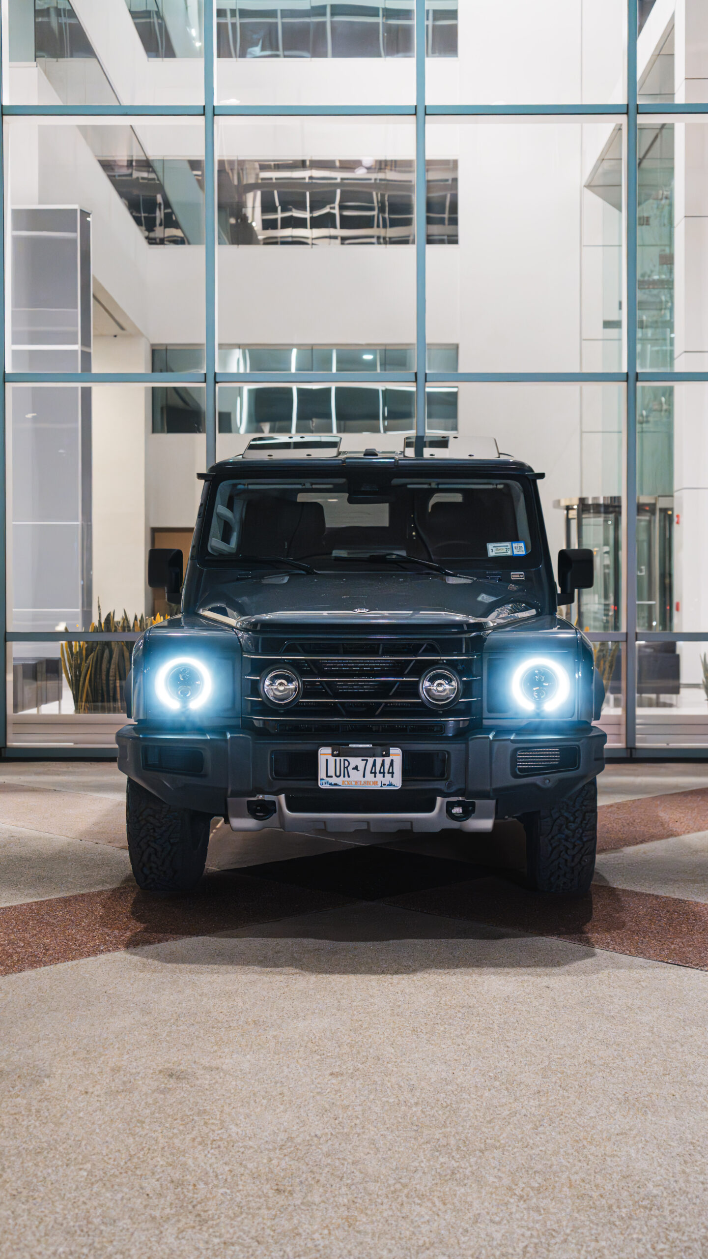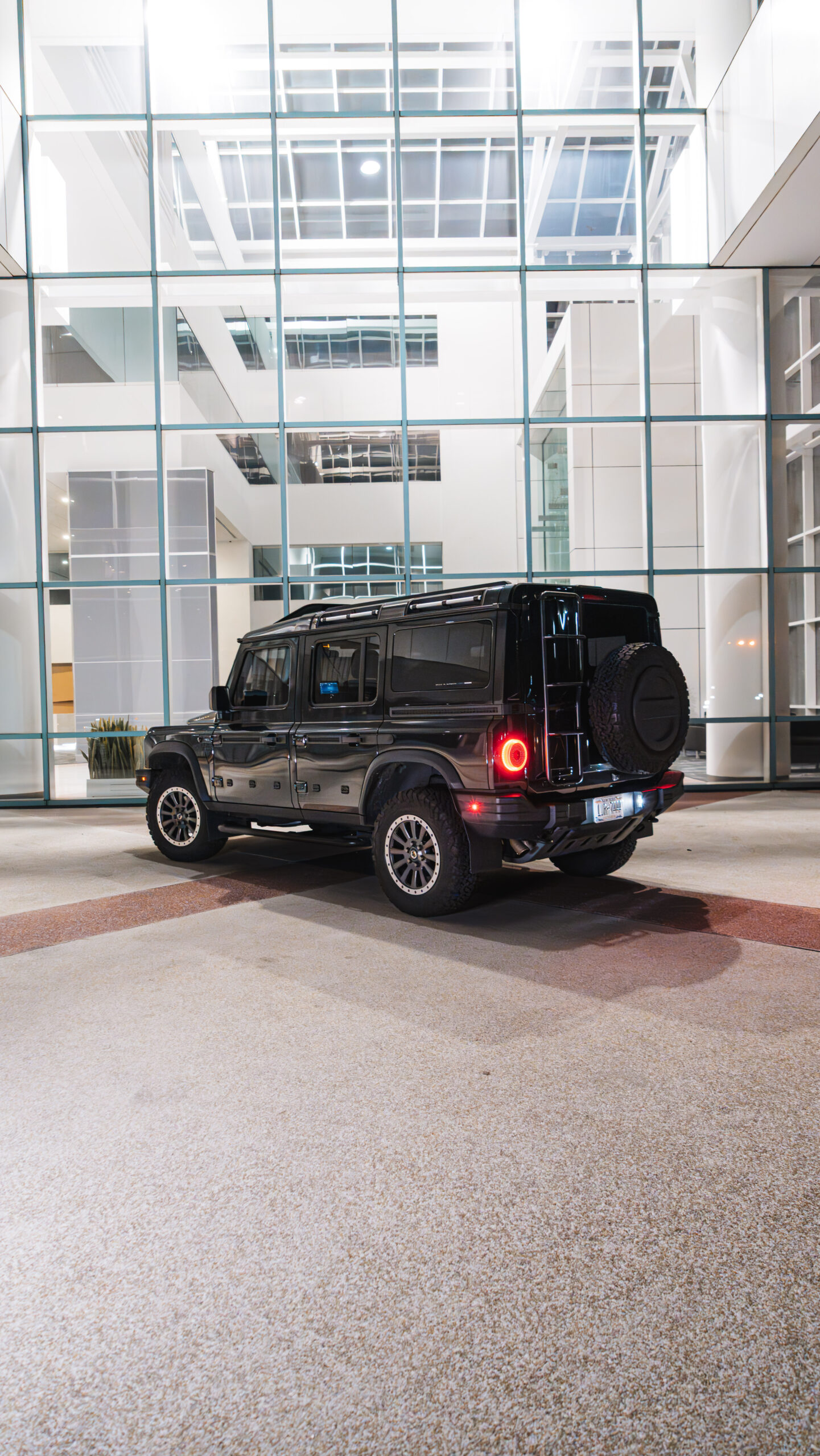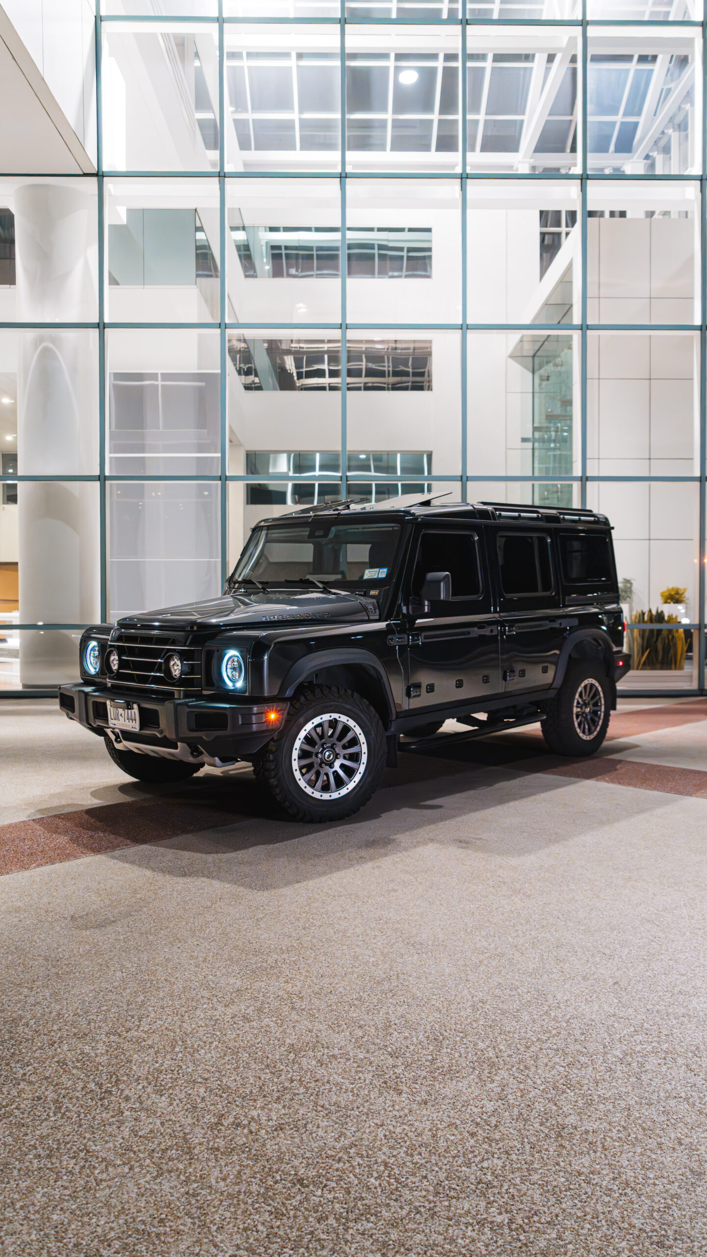 Finished in a bold Black exterior with a matching Black interior, the INEOS Grenadier revives the rugged charm of a classic Defender while seamlessly integrating modern technology and refined sophistication.