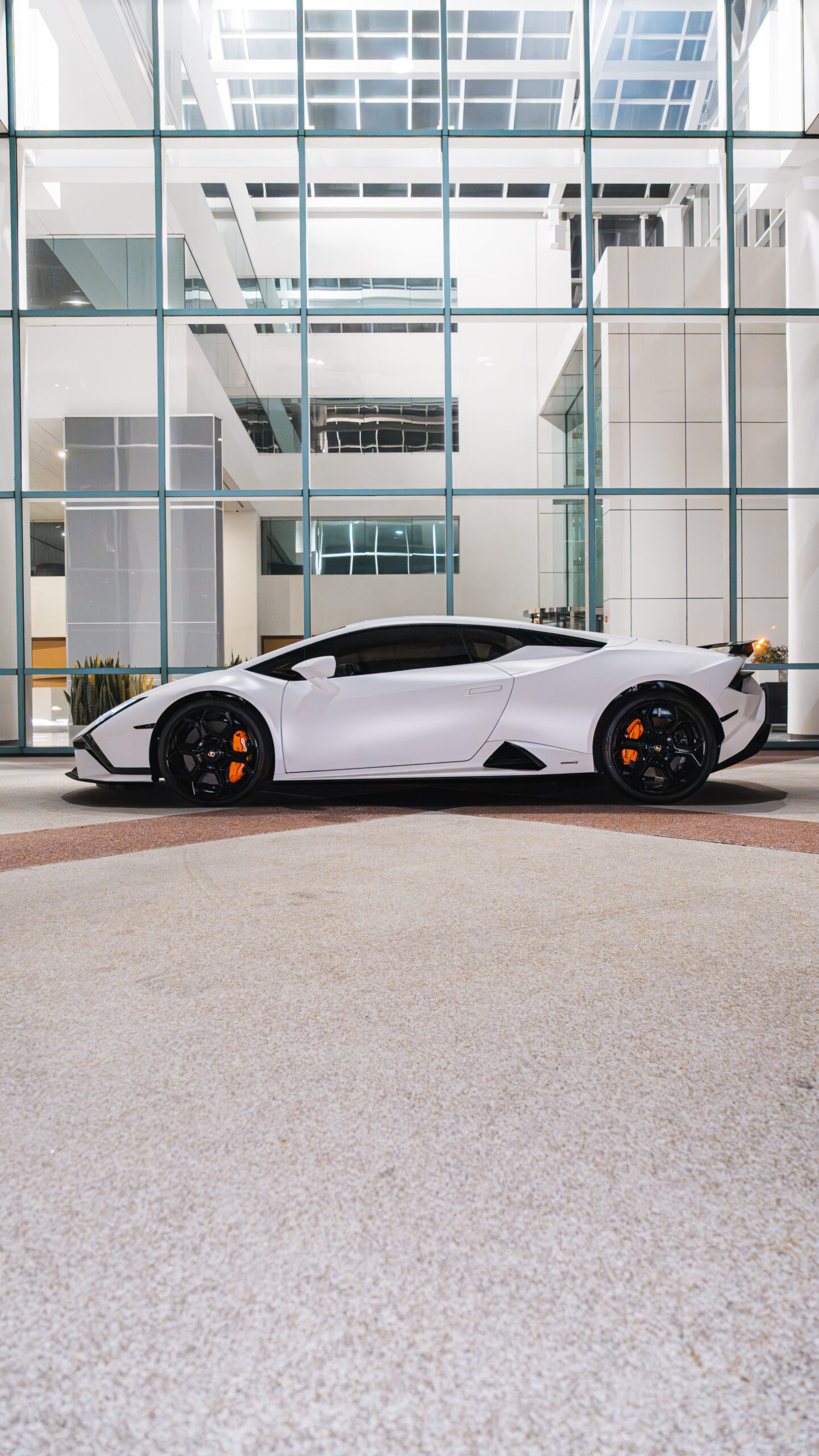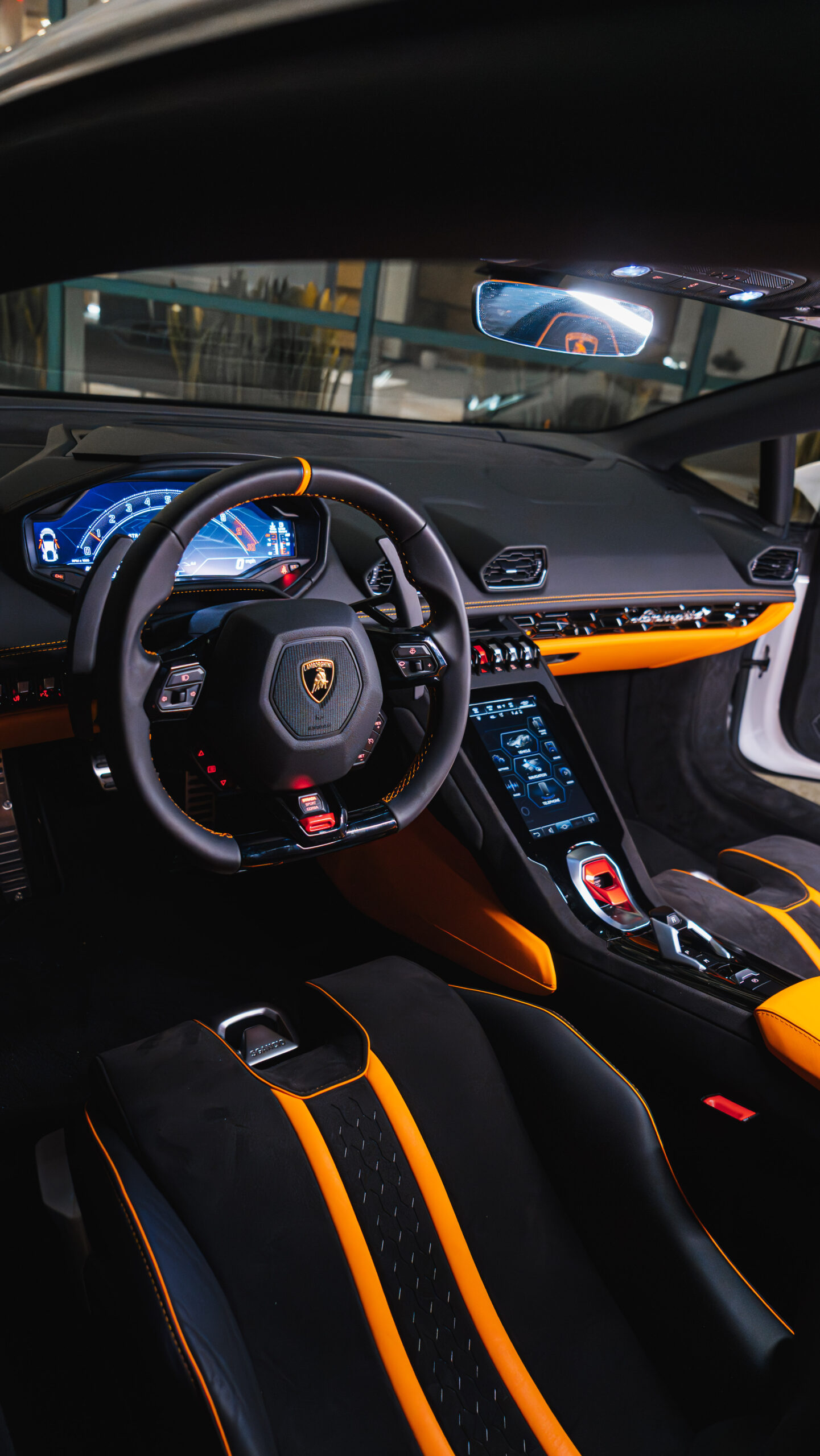 Elegantly presented in a Satin White exterior, this vehicle features a refined black Alcantara interior accented with bold orange highlights.